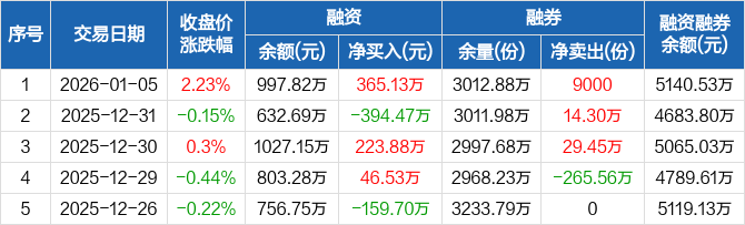 國證2000ETF:融資凈買入365.13萬元,融資余額997.82萬元(01-05)