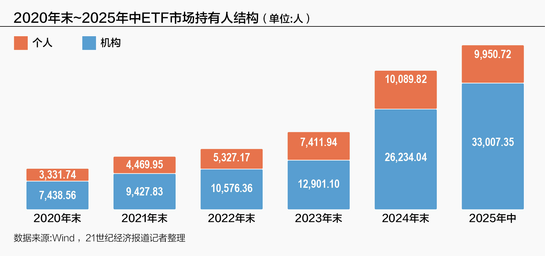 從2020年年末至2025年年中,中國ETF市場的持有人結(jié)構(gòu),最核心的特征是機構(gòu)投資者主導(dǎo)地位的鞏固。
