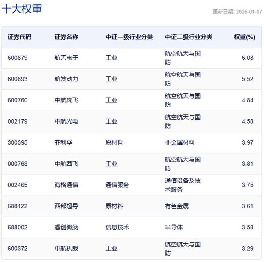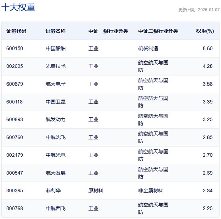 中證軍工龍頭指數(shù)主要權(quán)重股