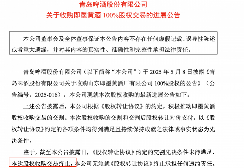 資本的退潮比想象中更快。青島啤酒(600600.SH)在2025年10月宣告終止收購即墨黃酒100%股權(quán);2025年11月,流金科技公告因控股子公司四川流金酒業(yè)有限公司經(jīng)營未達(dá)預(yù)期,擬“以1元人民幣的價(jià)格”,將其51%股權(quán)出讓,這筆“超低價(jià)”交易背后,標(biāo)的公司的凈資產(chǎn)已然是負(fù)數(shù)。