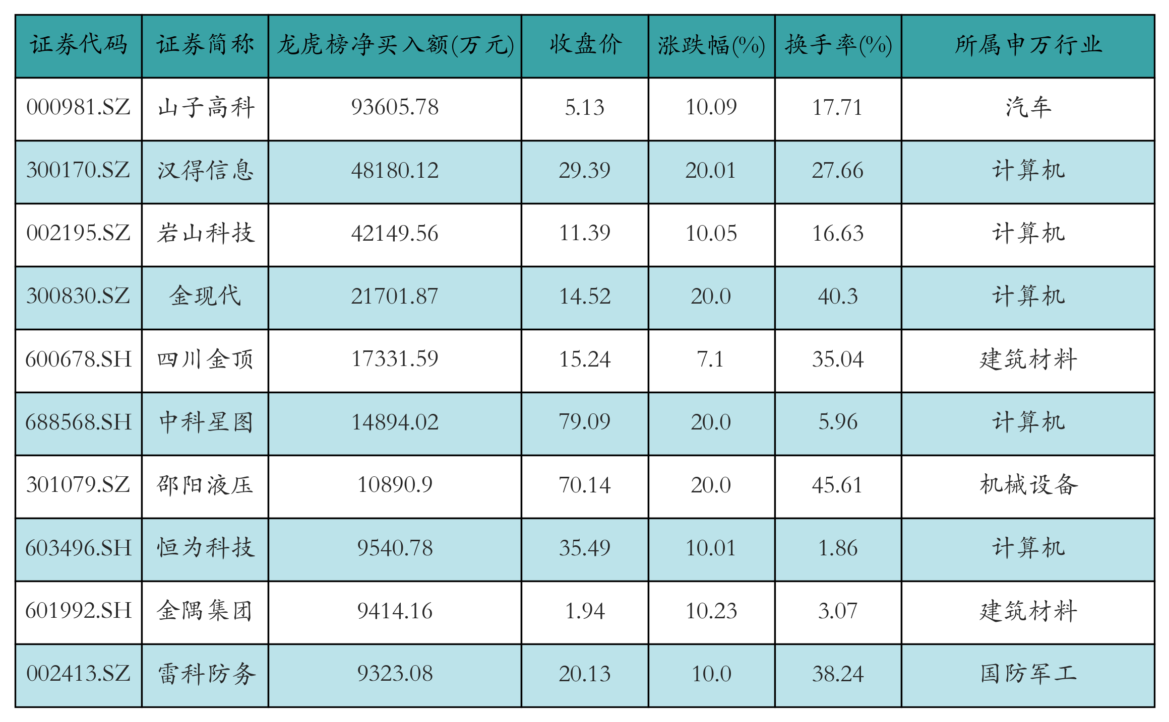 四、龍虎榜情況