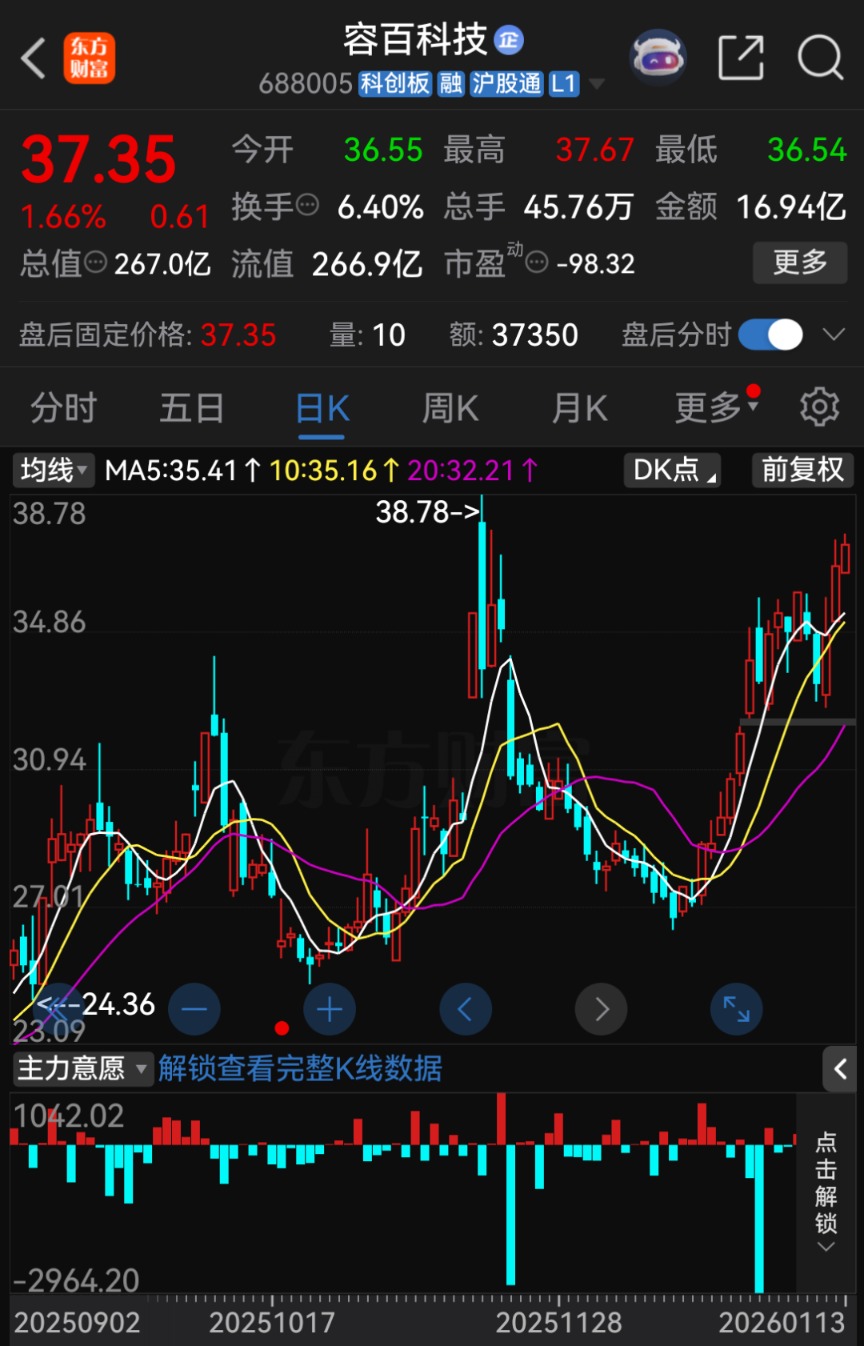 1月13日收盤,容百科技股價(jià)報(bào)37.35元/股,漲幅達(dá)1.66%,總市值為267億元。