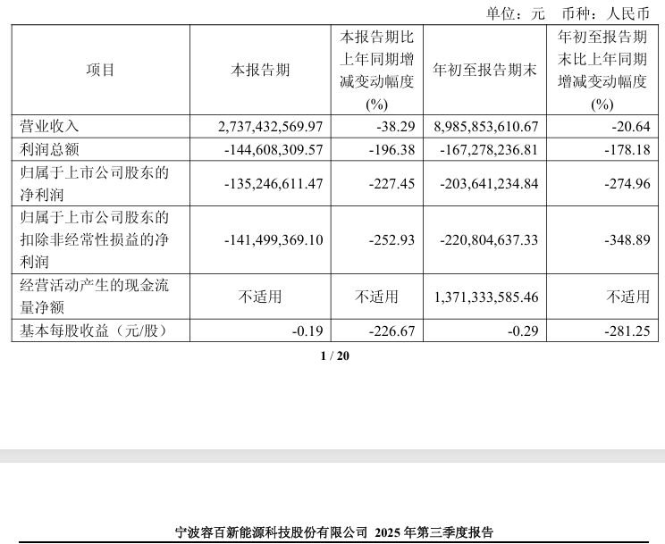 容百科技公告稱,公司2025年出現(xiàn)業(yè)績(jī)變化,主要是2025年前三季度的銷量下滑,導(dǎo)致業(yè)績(jī)出現(xiàn)階段性承壓。