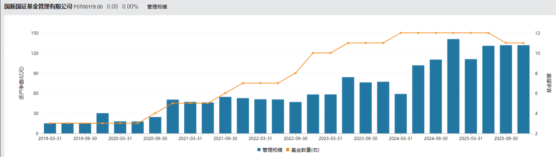 Wind數(shù)據(jù)顯示,截至2025年三季度末,國新國證基金管理的公募規(guī)模為131.61億元;其中非貨基金規(guī)模為89.52億元,非貨規(guī)模在全行業(yè)排在百名之外。