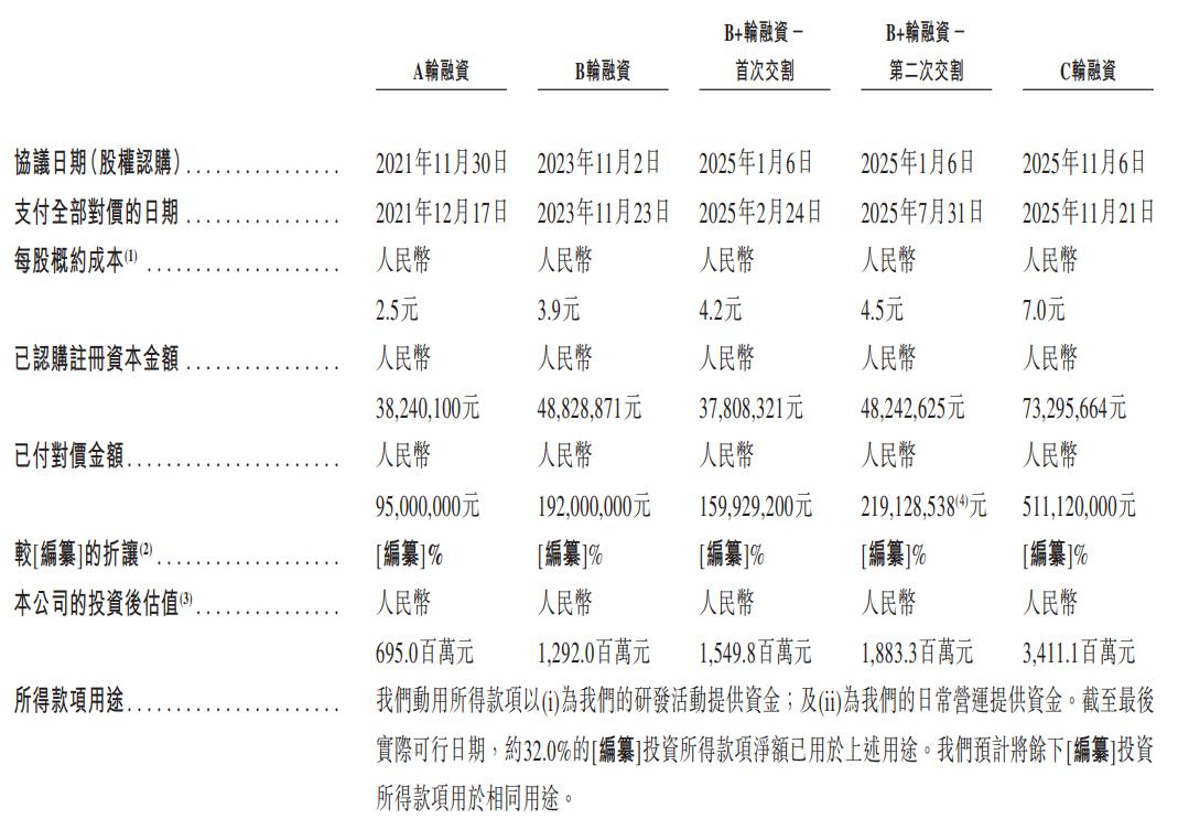 截至2025年11月30日,公司持有現(xiàn)金及現(xiàn)金等價物及按公允價值計入其他全面收益的債務投資共計7.28億元,為后續(xù)研發(fā)與運營提供了支撐。在2025年11月完成的最近一輪C輪融資后,公司估值已達34.11億元。