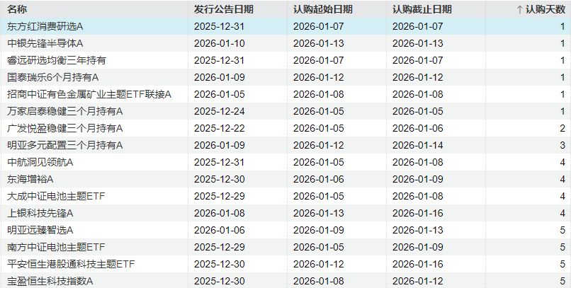 《每日經(jīng)濟新聞》記者注意到,開年以來,公募基金認(rèn)購活躍度明顯提升。截至1月14日,2026年以來已經(jīng)有6只公募基金僅發(fā)售一天就結(jié)束募集,包括消費、科技、有色金屬等主題基金。