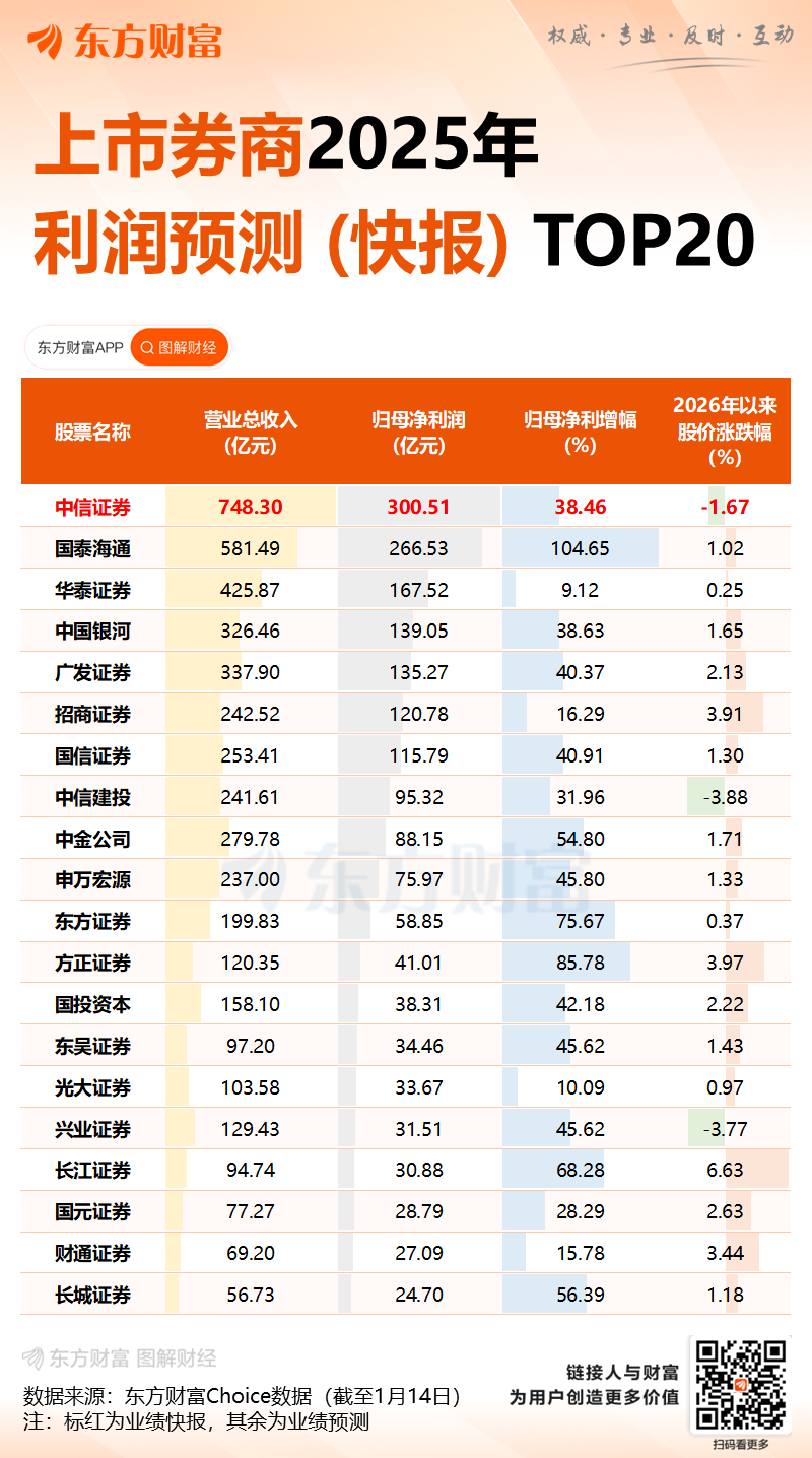 而龍頭券商2025年業(yè)績的亮眼,一定程度也反映了券商行業(yè)2025年業(yè)績的整體向好。