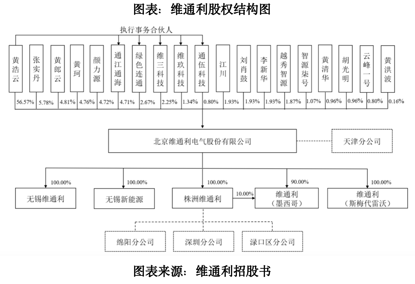 截至招股書簽署日(2025年12月30日),黃浩云直接持有維通利56.57%的股權(quán),是該公司的控股股東及實控人。另外,其弟黃郎云、其妻顏力源、其女黃珂等多人及多個員工持股平臺為其一致行動人,合計持有該公司85.51%的股權(quán)。