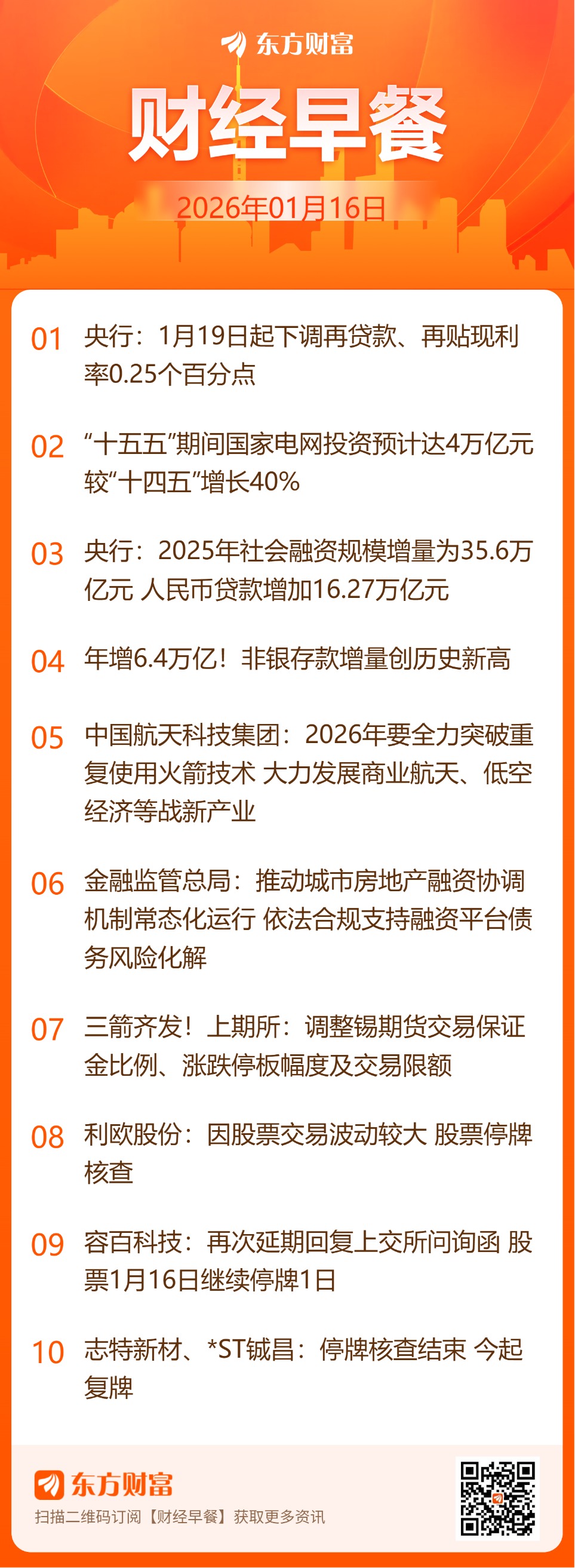 東方財(cái)富財(cái)經(jīng)早餐 1月16日周五