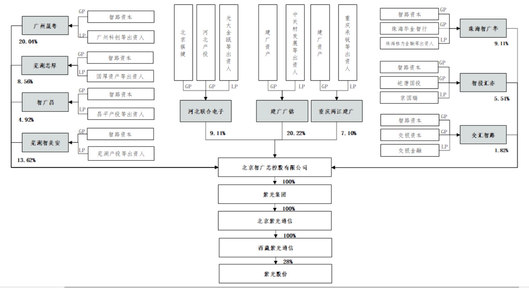 據(jù)重整計(jì)劃,由北京智路資產(chǎn)管理有限公司和北京建廣資產(chǎn)管理有限公司作為牽頭方組成的聯(lián)合體(以下簡(jiǎn)稱“智路建廣聯(lián)合體”)為紫光集團(tuán)等七家企業(yè)實(shí)質(zhì)合并重整戰(zhàn)略投資者,智路建廣聯(lián)合體擬通過(guò)其搭建的戰(zhàn)投收購(gòu)平臺(tái)智廣芯整體承接重整后紫光集團(tuán)100%股權(quán)。