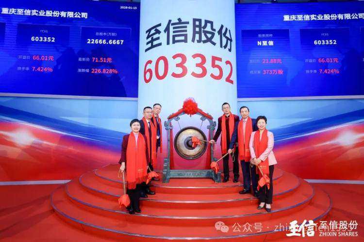 1月15日,重慶至信實(shí)業(yè)股份有限公司(以下簡稱“至信股份”)在上海證券交易所主板敲鑼上市,成為今年A股第二家、重慶市首家上市公司,首日收盤市值達(dá)155億元。