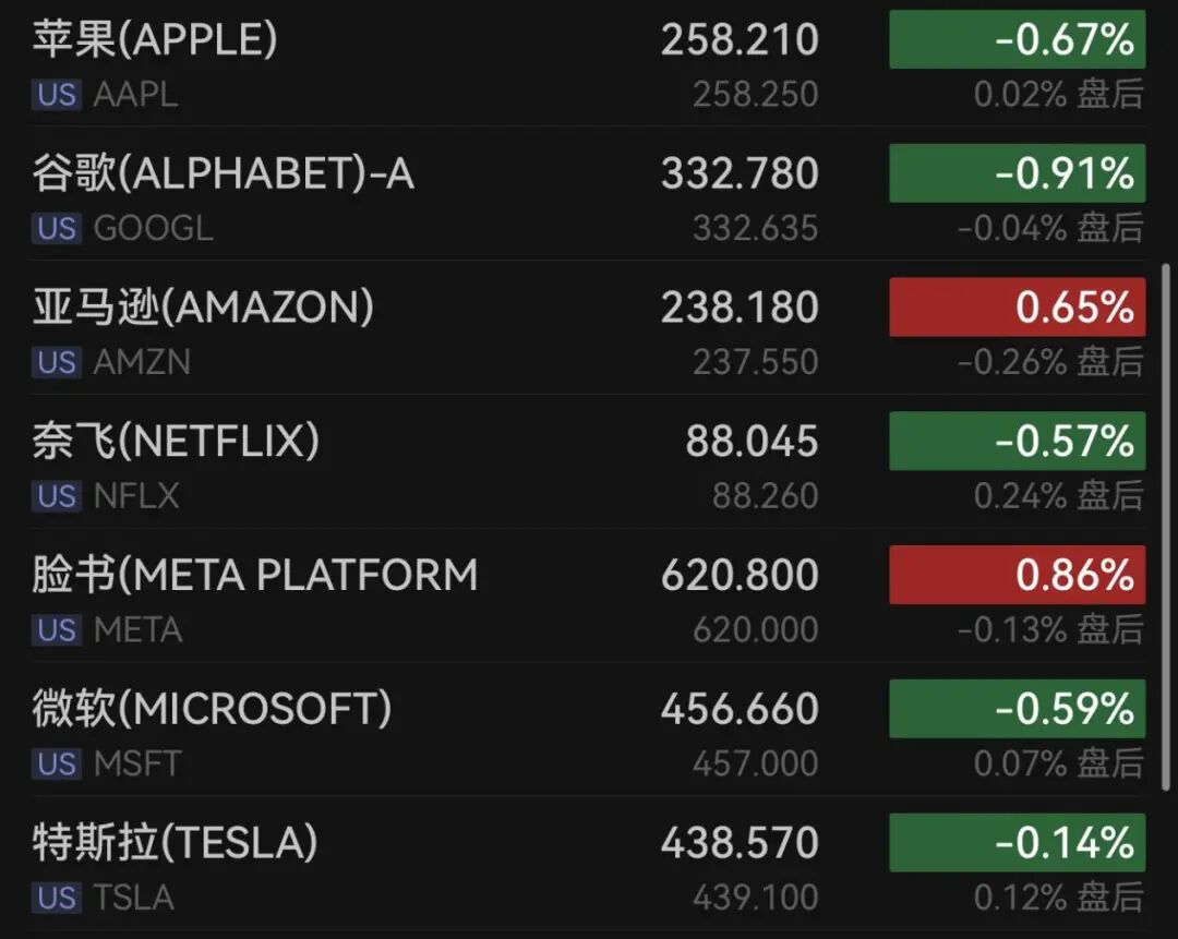 大型科技股漲跌互現(xiàn),英偉達(dá)漲超2%,臉書(shū)漲0.86%,亞馬遜漲0.65%,谷歌跌近1%,蘋(píng)果跌0.67%,微軟跌0.59%,特斯拉跌0.14%。