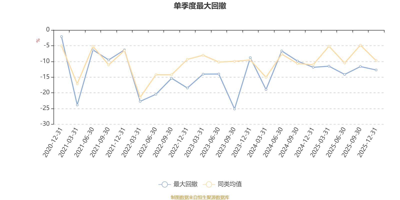 截至1月15日,基金近三年最大回撤為44.44%,同類可比基金排名51/57。單季度最大回撤出現(xiàn)在2023年三季度,為25.18%。