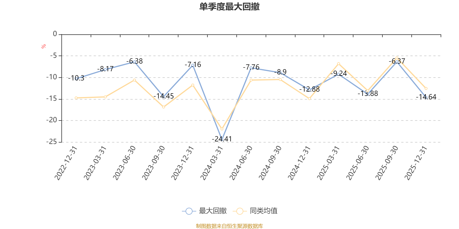 截至1月15日,基金近三年最大回撤為35.17%,同類可比基金排名4/32。單季度最大回撤出現(xiàn)在2024年一季度,為24.41%。