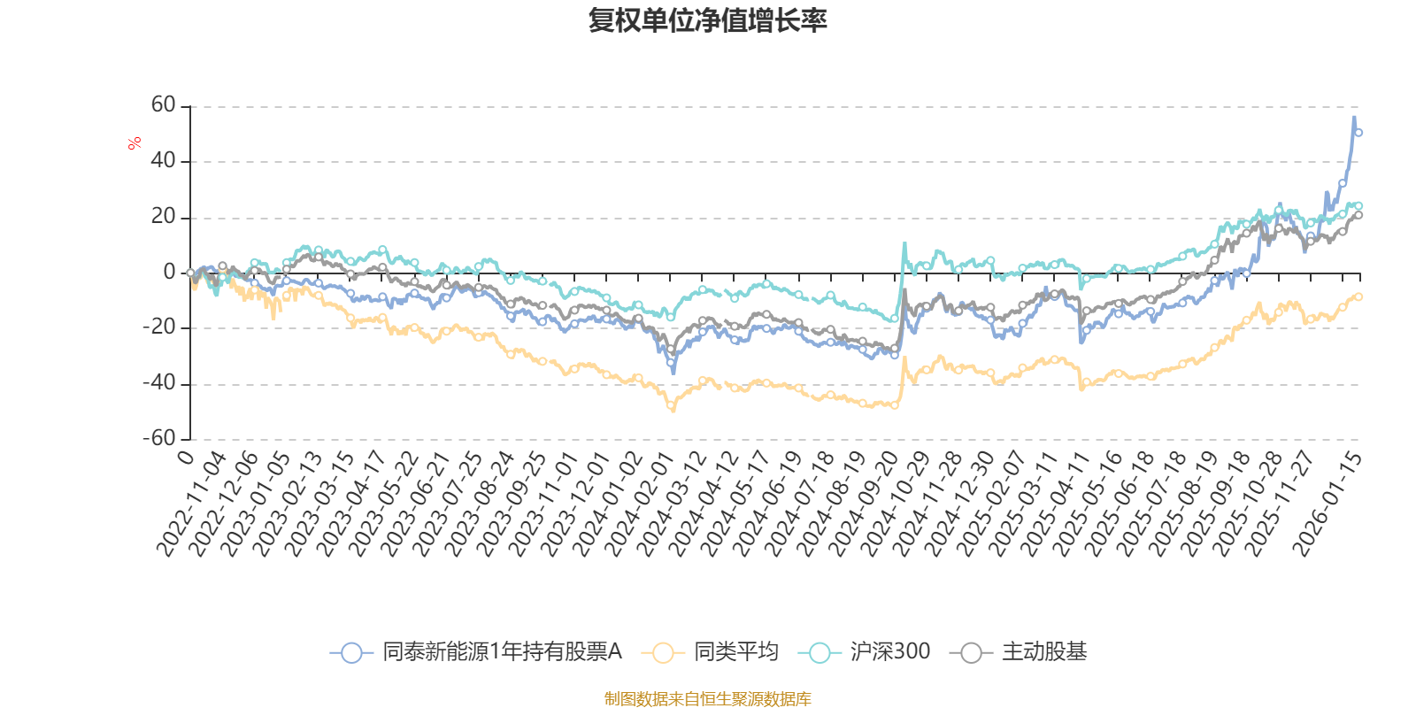 截至1月15日,同泰新能源1年持有股票A近三個月復(fù)權(quán)單位凈值增長率為27.98%,位于同類可比基金1/39;近半年復(fù)權(quán)單位凈值增長率為70.43%,位于同類可比基金1/39;近一年復(fù)權(quán)單位凈值增長率為90.59%,位于同類可比基金1/38;近三年復(fù)權(quán)單位凈值增長率為55.68%,位于同類可比基金1/32。