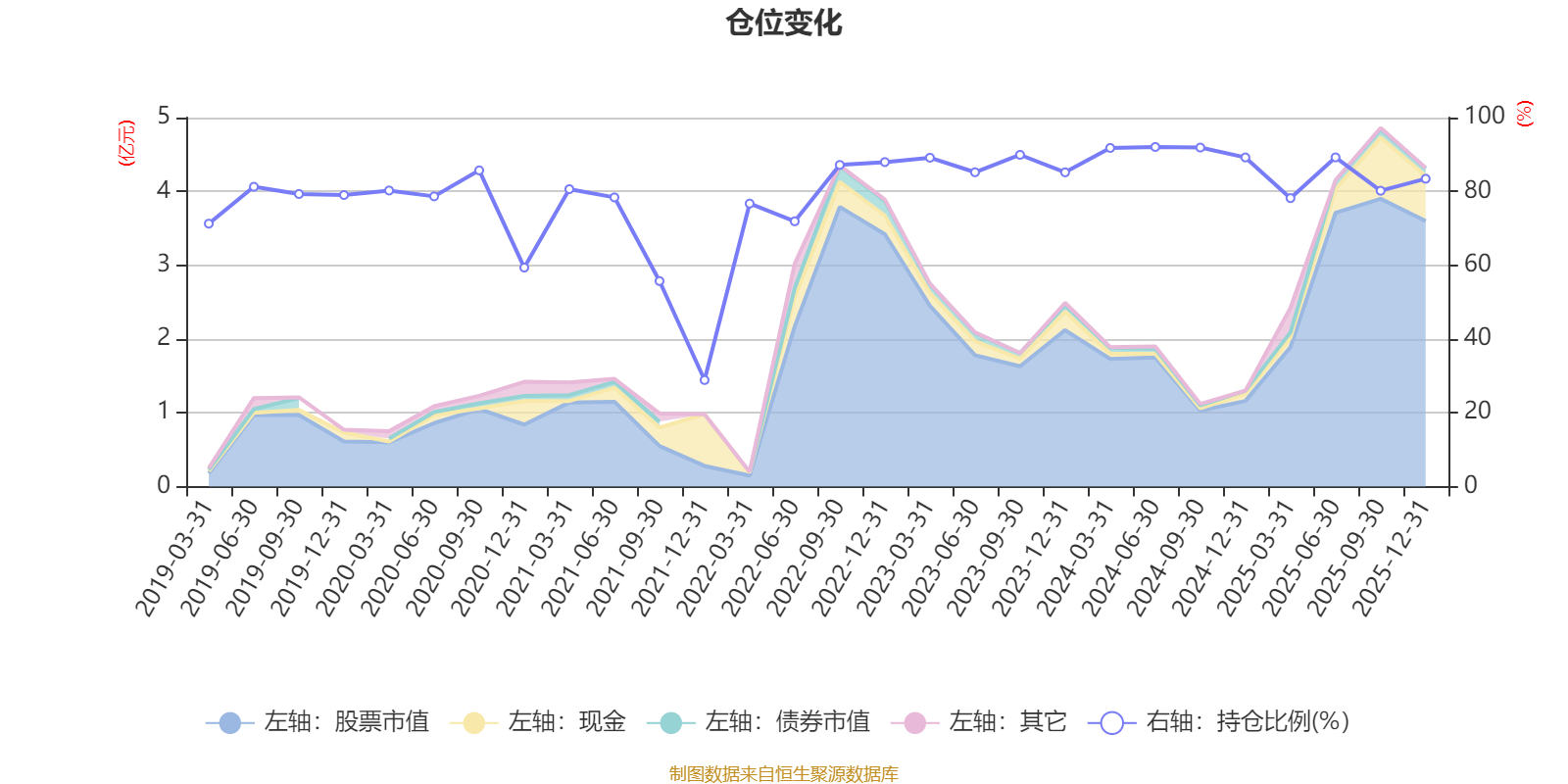 據(jù)定期報(bào)告數(shù)據(jù)統(tǒng)計(jì),近三年平均股票倉位為87.11%,同類平均為72.46%。2024年上半年末基金達(dá)到92.04%的最高倉位,2021年末最低,為28.88%。
