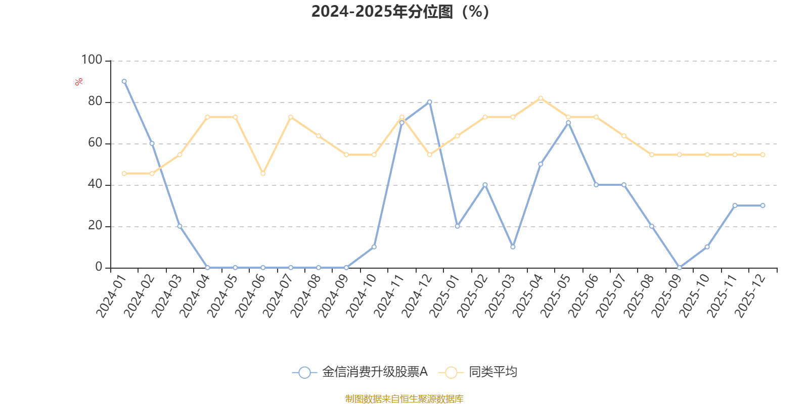通過所選區(qū)間該基金凈值增長率分位圖,可以觀察該基金與同類基金業(yè)績比較情況。圖為坐標原點到區(qū)間內(nèi)某時點的凈值增長率在同類基金中的分位數(shù)。