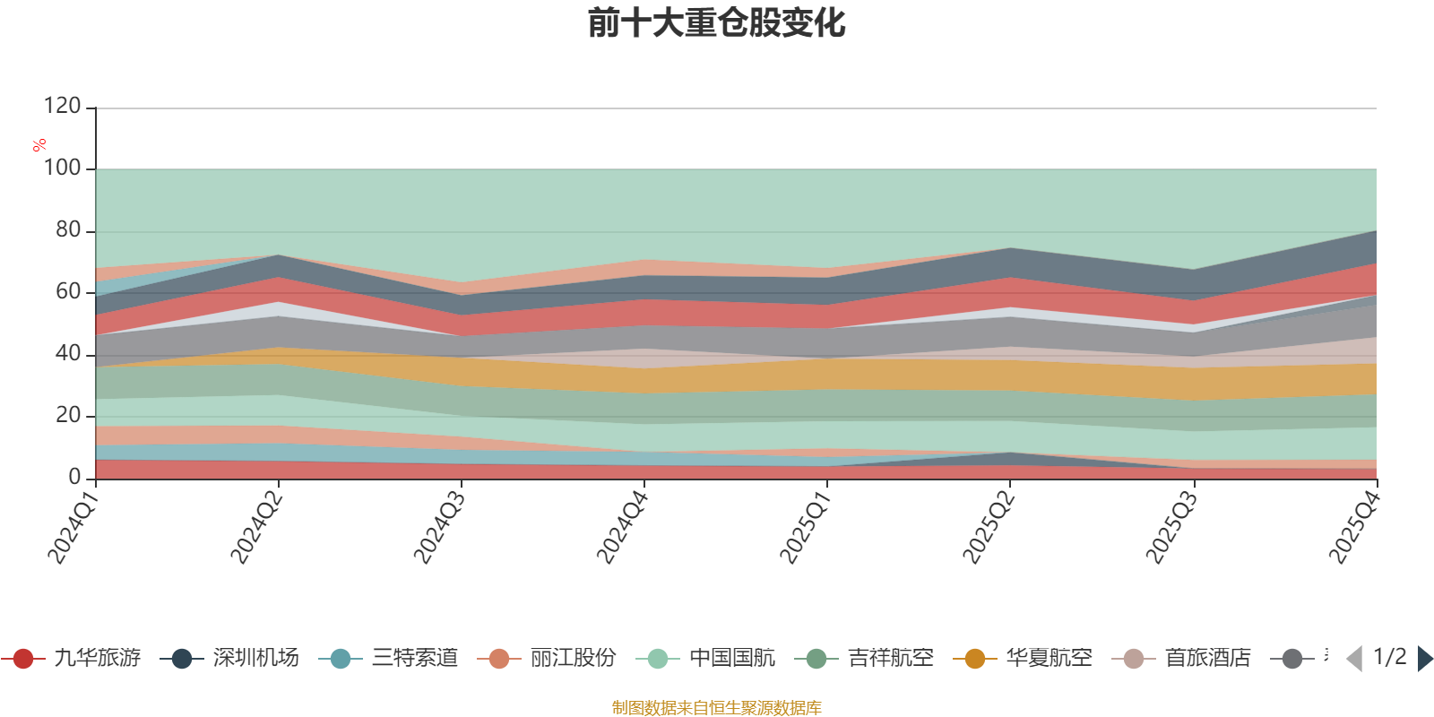 該基金持股集中度較高,近2年前十大重倉股集中度長期超過60%。截至2025年四季度末,基金十大重倉股分別是吉祥航空、中國東航、中國國航、春秋航空、南方航空、華夏航空、首旅酒店、九華旅游、三峽旅游、麗江股份。