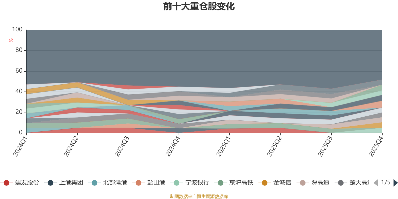 截至2025年四季度末,基金十大重倉(cāng)股分別是恒力石化、中國(guó)東航、華魯恒升、金誠(chéng)信、白云機(jī)場(chǎng)、寧波銀行、深高速、龍江交通、楚天高速、招商輪船。