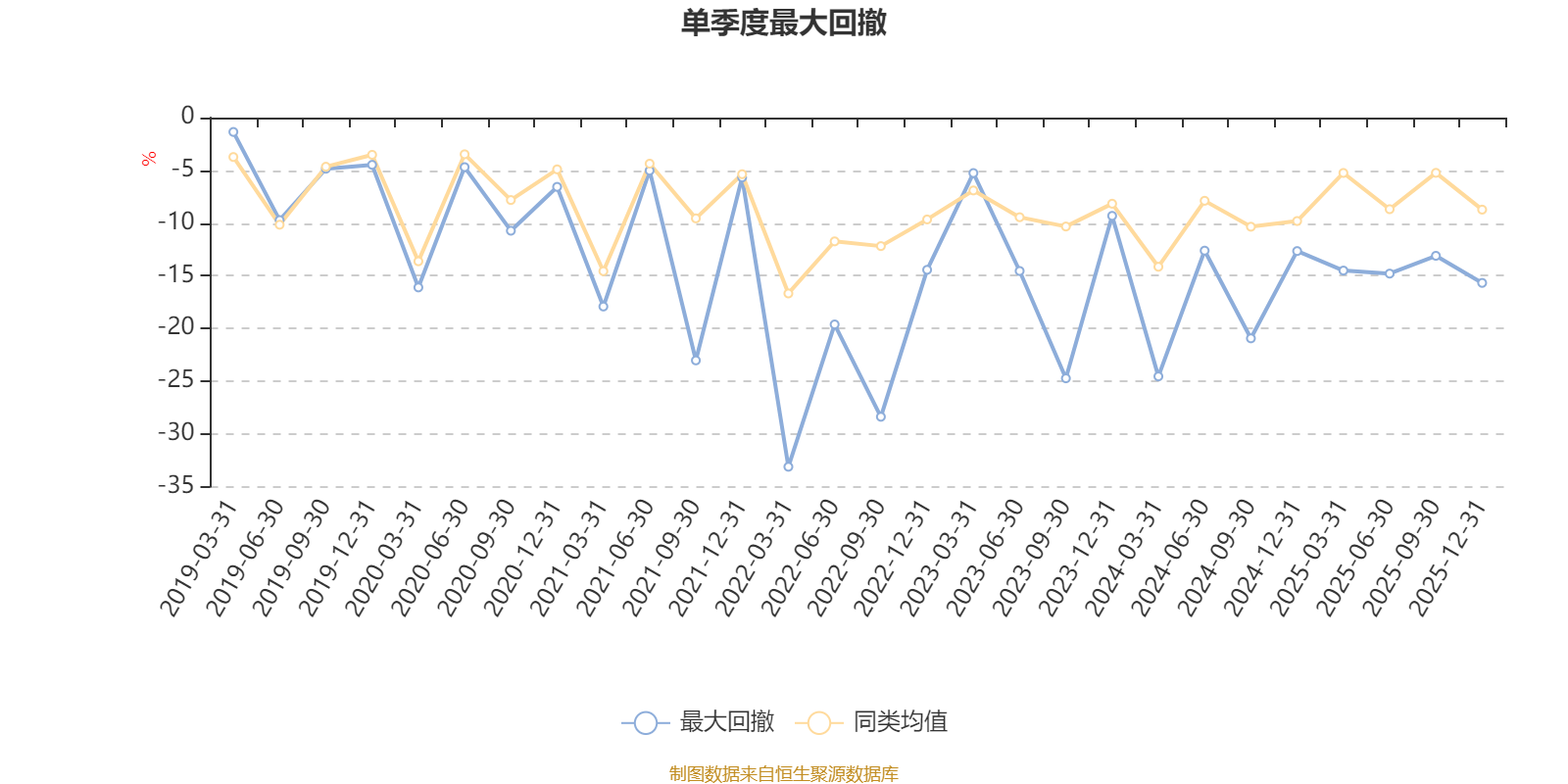 截至1月15日,基金近三年最大回撤為45.54%,同類可比基金排名1100/1265。單季度最大回撤出現(xiàn)在2022年一季度,為33.12%。