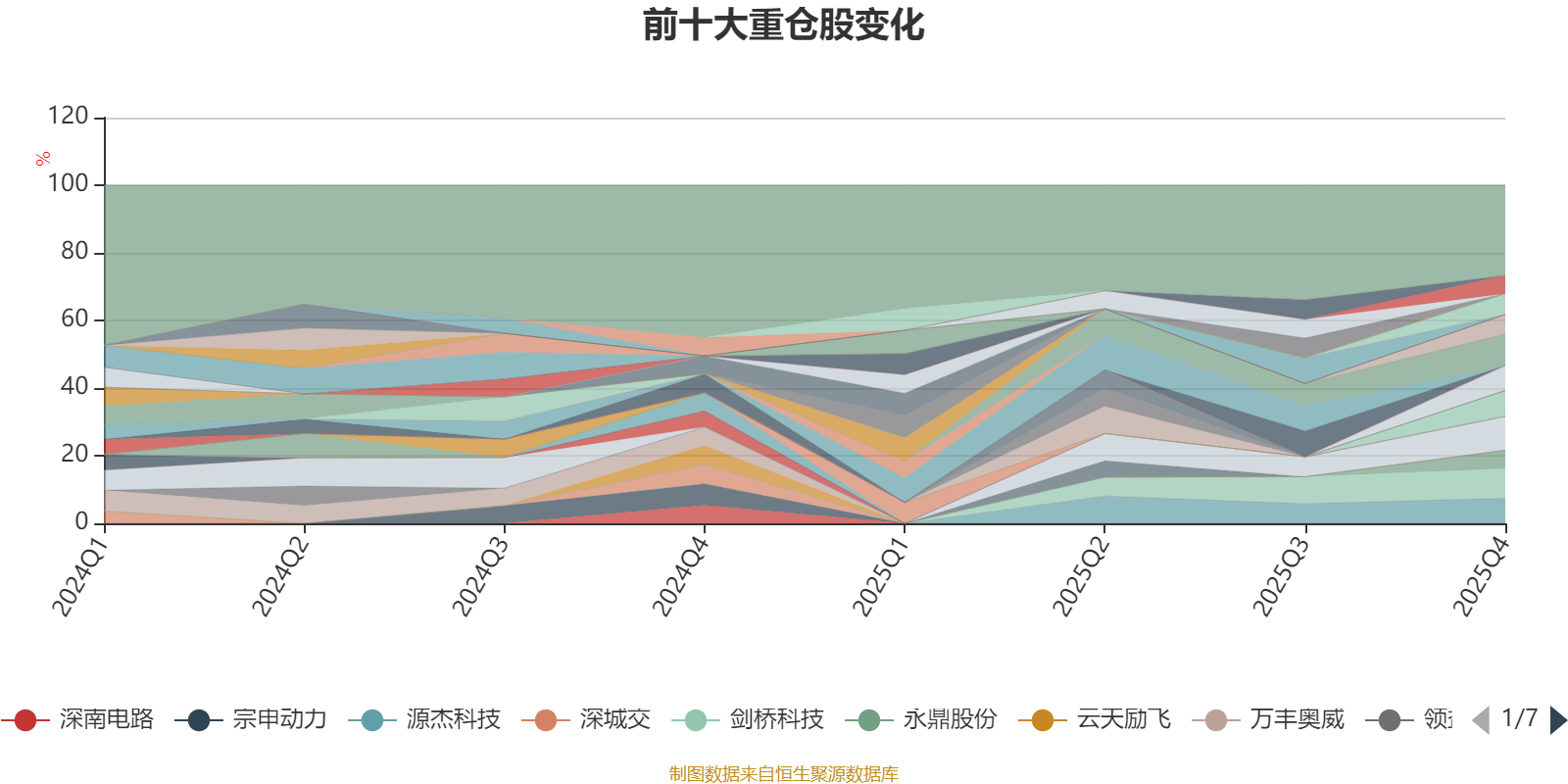 該基金持股集中度較高。截至2025年四季度末,基金十大重倉股分別是中際旭創(chuàng)、新易盛、劍橋科技、長芯博創(chuàng)、源杰科技、天孚通信、東山精密、中瓷電子、永鼎股份、賽微電子。