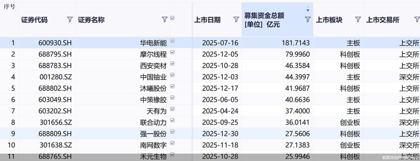 數(shù)據(jù)顯示,A股2025年116只新股募資超1300億元,港股募資額重回全球榜首;從華電新能(600930.SH)181.71億元的“巨無(wú)霸”IPO,到多家券商投行密集“搶人”,2025年至2026年初的一級(jí)市場(chǎng),正以“募資-投資-退出”全鏈條復(fù)蘇的姿態(tài),書寫著資本市場(chǎng)的新圖景。
