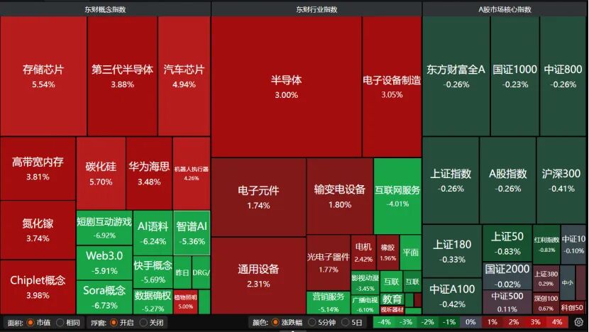 盤面上,AI應(yīng)用熄火,存儲(chǔ)芯片、第三代半導(dǎo)體、汽車芯片、高帶寬內(nèi)存、碳化硅、華為海思、機(jī)器人執(zhí)行器、電子設(shè)備制造大漲。