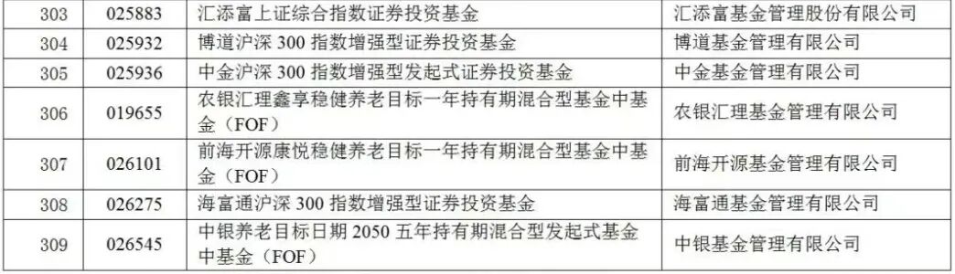 證監(jiān)會(huì)公布的最新一期《個(gè)人養(yǎng)老金基金名錄》顯示,截至去年年底,個(gè)人養(yǎng)老金基金已經(jīng)擴(kuò)容至309只,較去年三季度末新增7只。