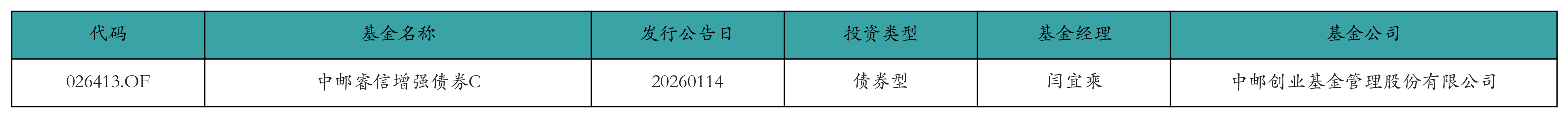 上周有1只新基金發(fā)行,分別為:中郵睿信增強債券C,詳情見下表: