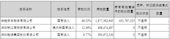 具體而言,長城證券2025年三季報(bào)顯示,截至報(bào)告期末,華能資本服務(wù)有限公司的持股比例高達(dá)46.53%。深圳新江南投資有限公司、深圳能源集團(tuán)股份有限公司的持股比例同樣超過5%,分別為12.36%、9.77%。
