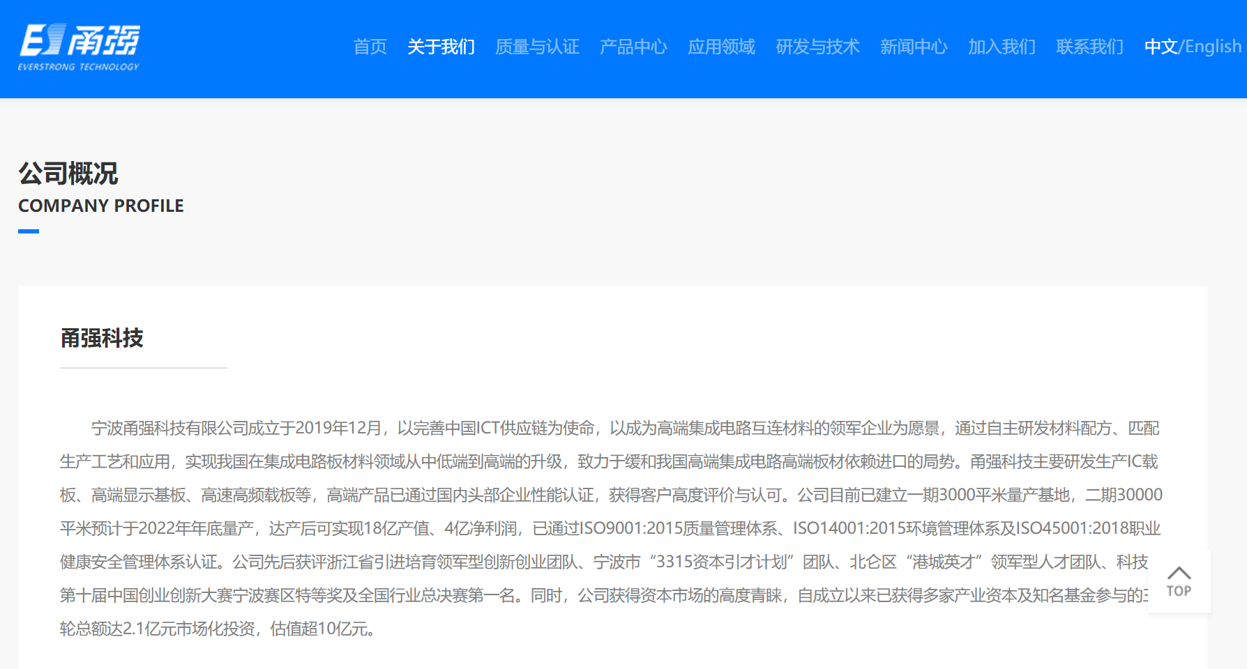 據(jù)甬強(qiáng)科技官網(wǎng)披露,公司自成立以來已獲得多家產(chǎn)業(yè)資本及知名基金參與的三輪總額達(dá)2.1億元市場化投資,估值超10億元。