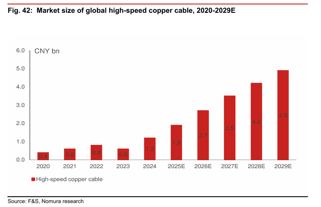 市場規(guī)模預(yù)期樂觀。據(jù)市場研究機構(gòu)Light Counting數(shù)據(jù),未來五年高速銅纜銷售額有望翻倍,到2028年達到28億美元。英偉達在Blackwell NVL72系統(tǒng)中率先采用DAC(直連銅纜),并可能在2026年的Rubin平臺繼續(xù)使用銅纜。亞馬遜AWS、Meta和微軟等大型AI客戶也在其AIDC項目中使用銅纜。