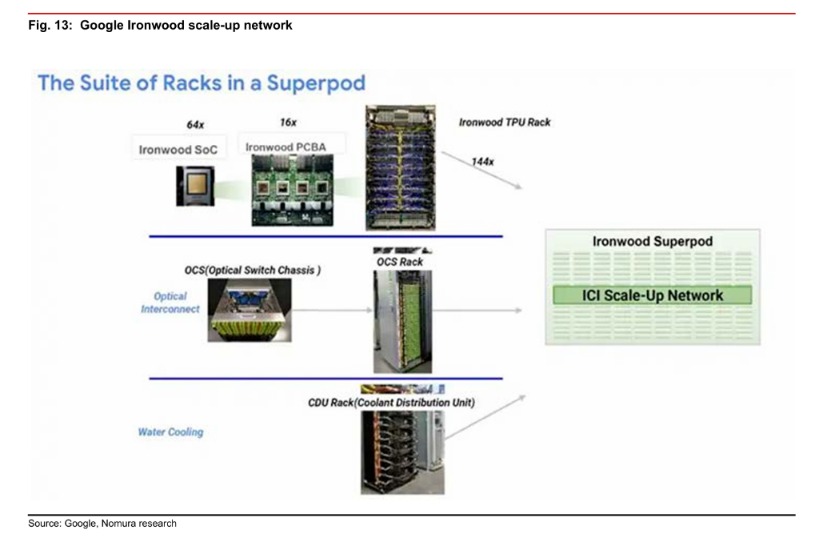 谷歌TPU v7采用3D環(huán)面拓撲,銅纜用于機架內(nèi)TPU互聯(lián),光模塊用于跨機架互聯(lián),OCS技術(shù)用于實現(xiàn)集群級連接調(diào)度。Meta采用混合互聯(lián)架構(gòu):scale-up側(cè)強化銅纜,scale-out側(cè)部署高速光模塊,并測試CPO交換機以提升可靠性。
