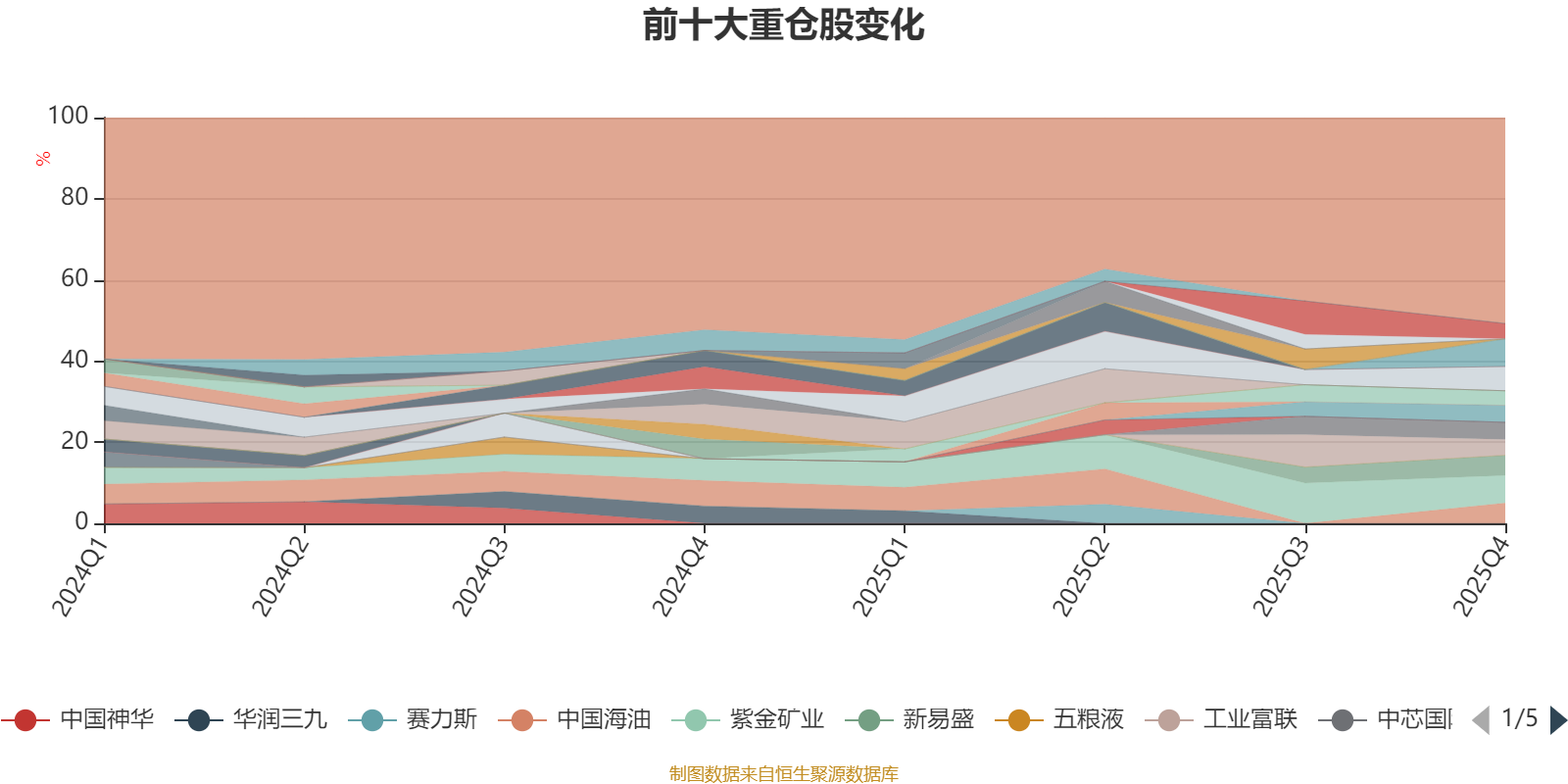 截至2025年四季度末,基金十大重倉股分別是藏格礦業(yè)、紫金礦業(yè)、工商銀行、中國海油、新易盛、中芯國際、巨化股份、工業(yè)富聯(lián)、寧德時代、春風(fēng)動力。