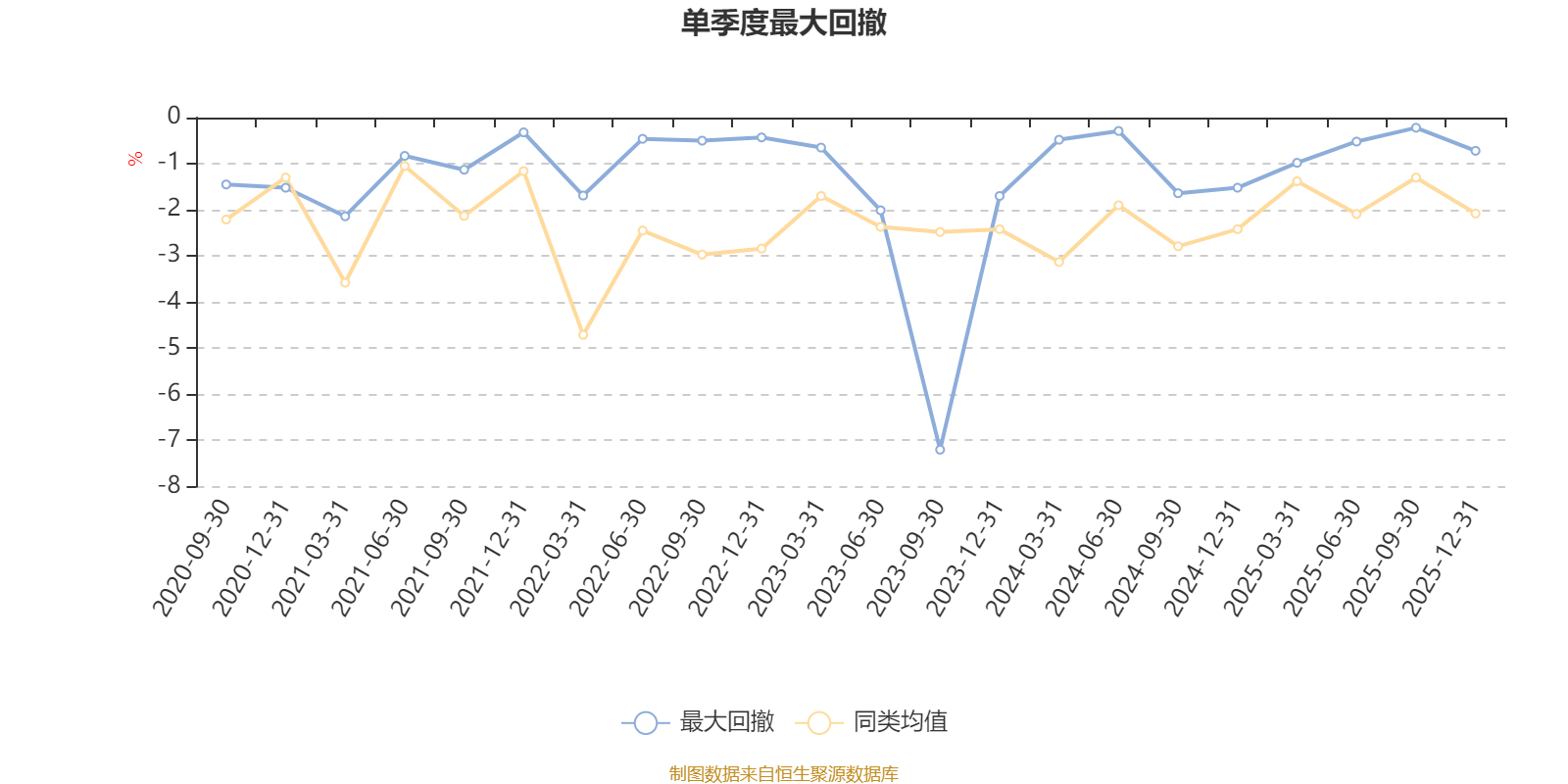截至1月16日,基金近三年最大回撤為9.75%,同類可比基金排名397/540。單季度最大回撤出現(xiàn)在2023年三季度,為7.2%。