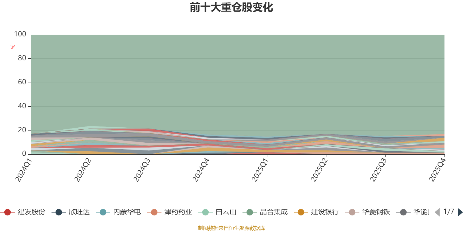 截至2025年四季度末,基金十大重倉股分別是中國人壽、龍騰光電、勝宏科技、海普瑞、京能置業(yè)、TCL科技、健康元、大華股份、京東方A、津藥藥業(yè)。