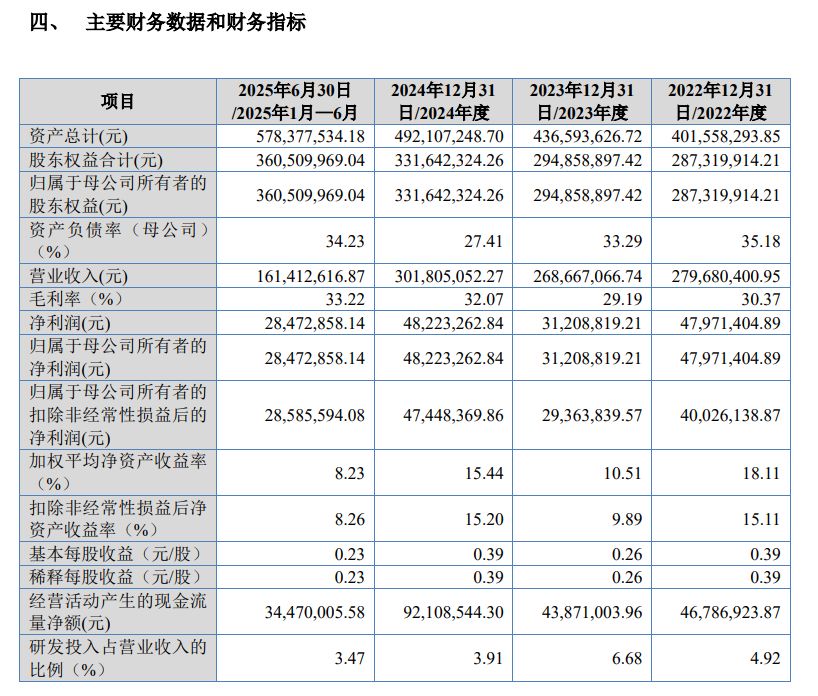報告期內(nèi),公司實現(xiàn)營收分別為2.80億元、2.69億元、3.02億元和1.61億元,歸母凈利潤分別為4797萬元、3121萬元、4822萬元和2847萬元。