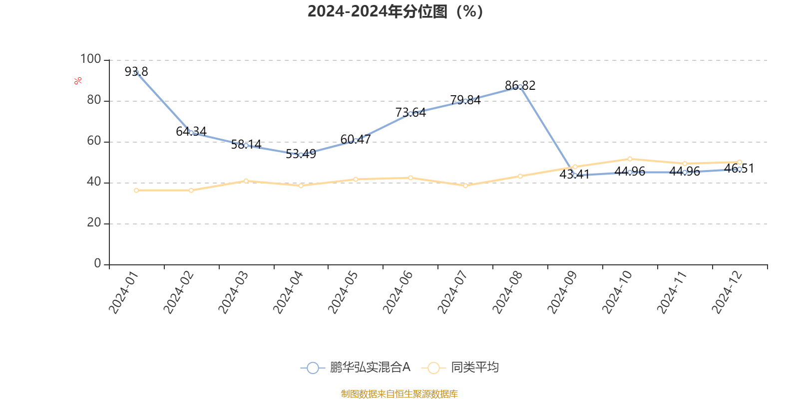 通過所選區(qū)間該基金凈值增長率分位圖,可以觀察該基金與同類基金業(yè)績比較情況。圖為坐標(biāo)原點到區(qū)間內(nèi)某時點的凈值增長率在同類基金中的分位數(shù)。