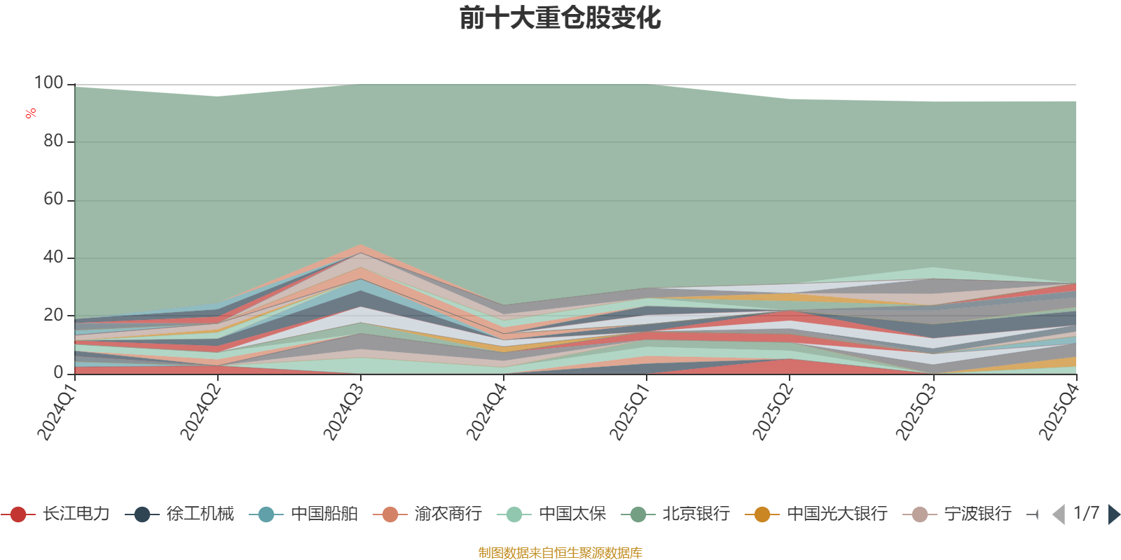 截至2025年四季度末,基金重倉股分別是工商銀行、中國平安、中國光大銀行、騰訊控股、中國太保、中聯(lián)重科、海爾智家、中國神華、紫金礦業(yè)、中國人保、中國人民保險集團(tuán)。