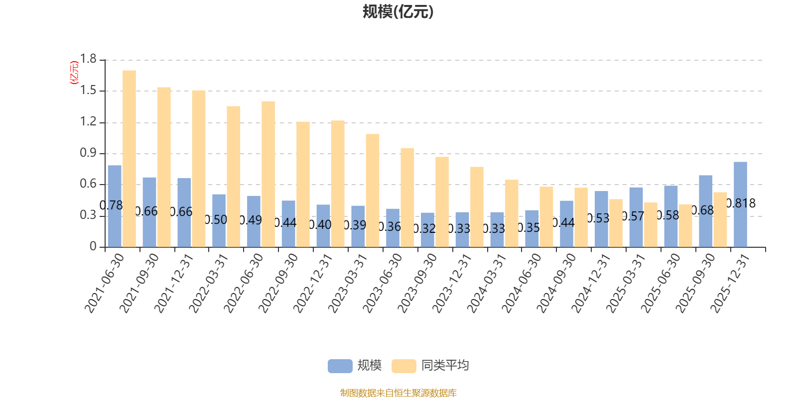 截至2025年四季度末,基金規(guī)模為8184.62萬(wàn)元。