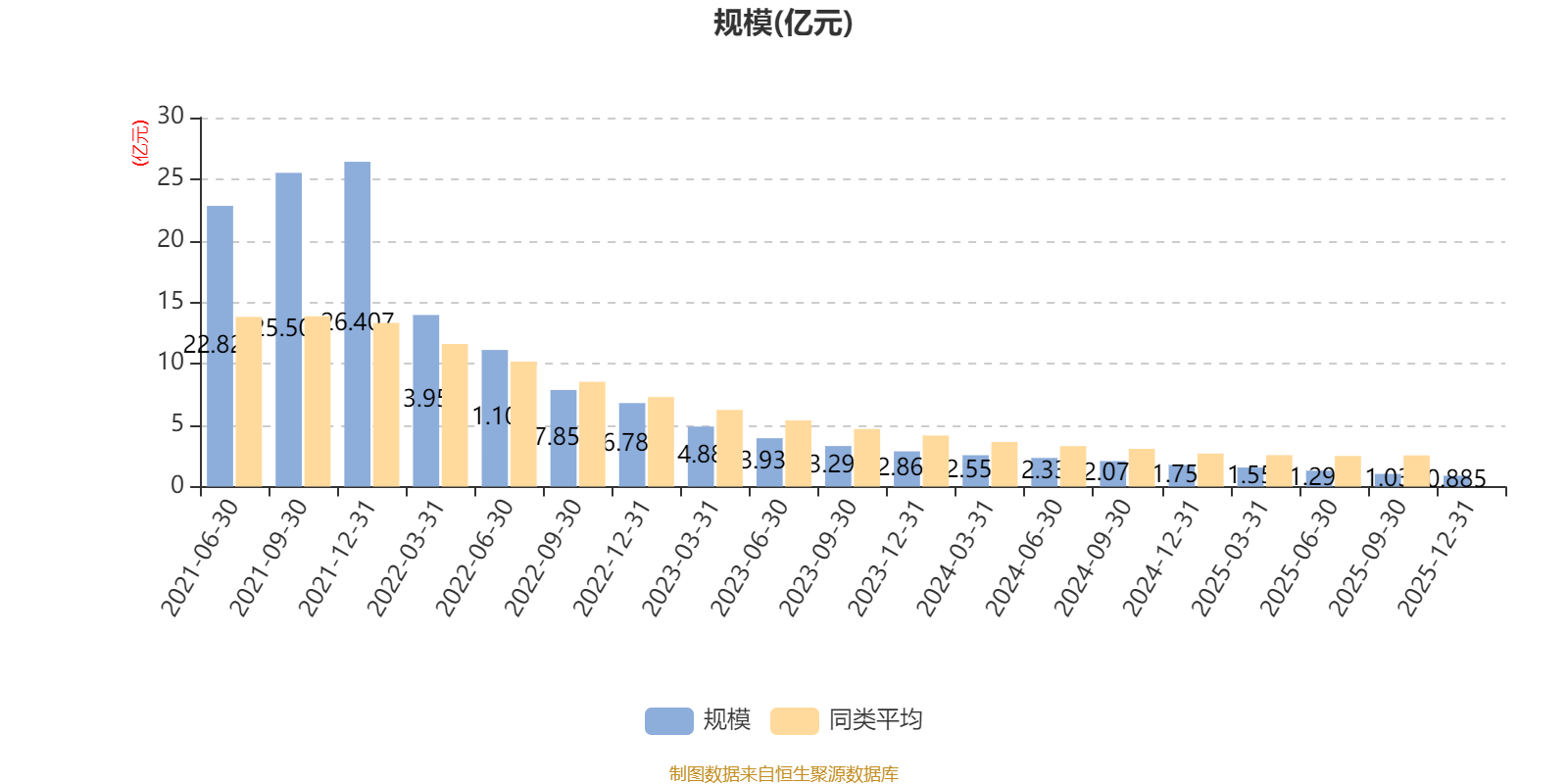 截至2025年四季度末,基金規(guī)模為8845.51萬(wàn)元。