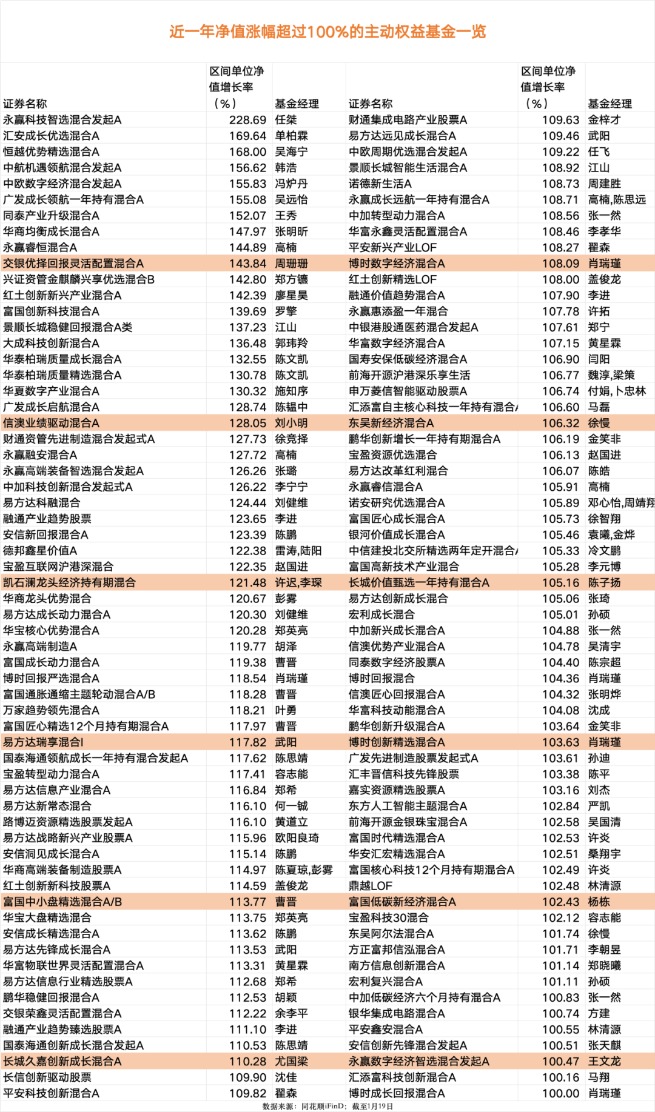 根據(jù)iFinD同花順數(shù)據(jù)統(tǒng)計(jì),截至1月19日,過(guò)去一年復(fù)權(quán)單位凈值增長(zhǎng)率超過(guò)100%的公募基金數(shù)量達(dá)到176只,其中主動(dòng)權(quán)益基金達(dá)到124只。