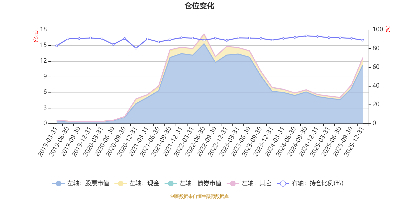 據(jù)定期報(bào)告數(shù)據(jù)統(tǒng)計(jì),近三年平均股票倉(cāng)位為91.27%,同類(lèi)平均為87.73%。2024年三季度末基金達(dá)到93.63%的最高倉(cāng)位,2020年末最低,為80.42%。