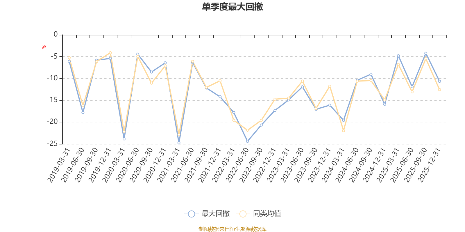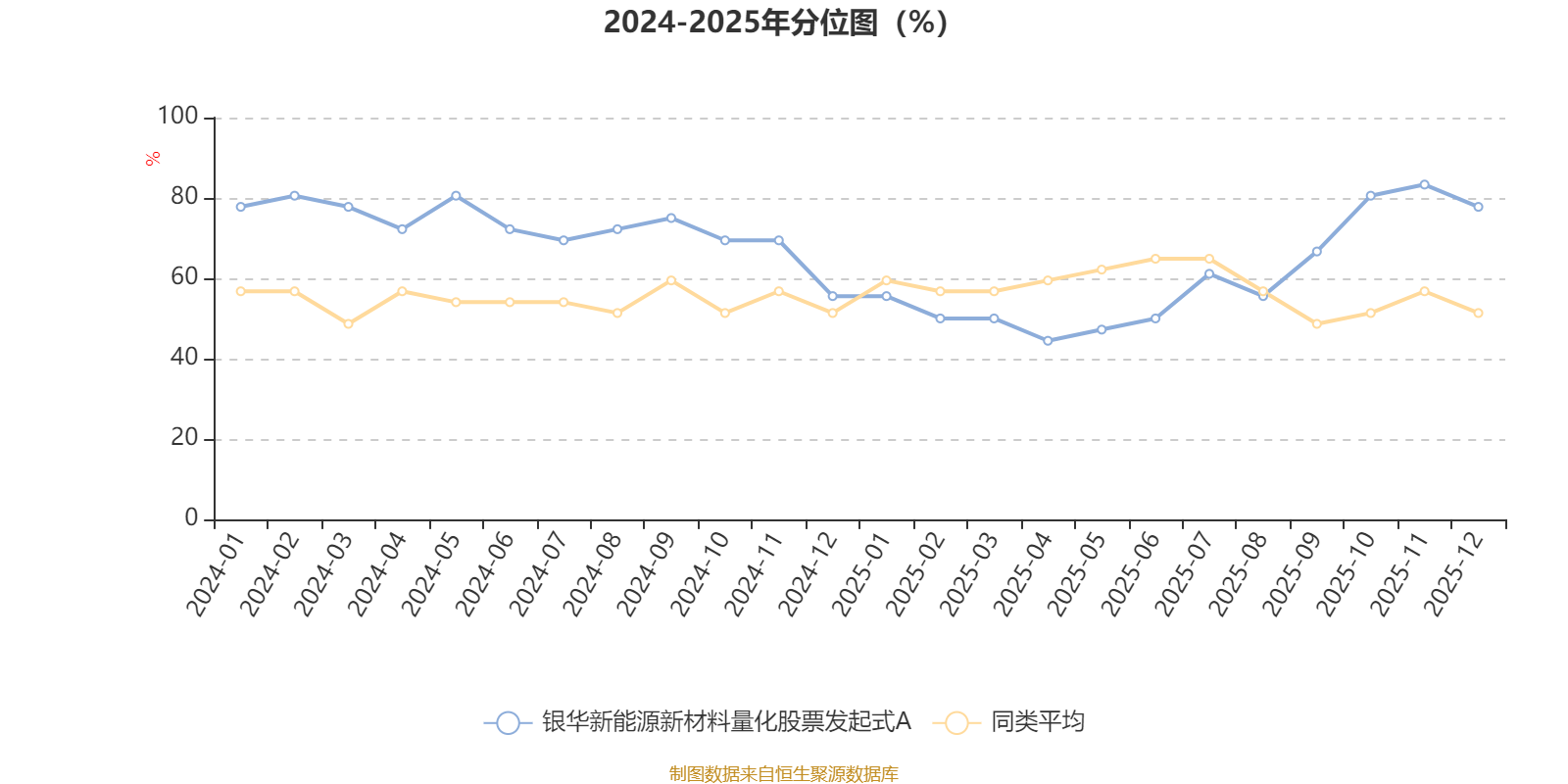 通過(guò)所選區(qū)間該基金凈值增長(zhǎng)率分位圖,可以觀察該基金與同類(lèi)基金業(yè)績(jī)比較情況。圖為坐標(biāo)原點(diǎn)到區(qū)間內(nèi)某時(shí)點(diǎn)的凈值增長(zhǎng)率在同類(lèi)基金中的分位數(shù)。