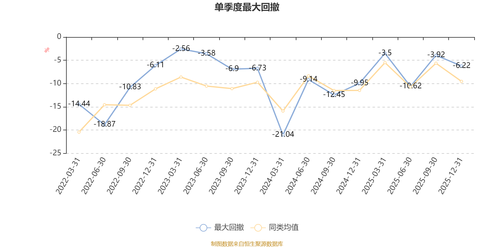 截至1月21日,基金近三年最大回撤為24.73%,同類可比基金排名21/156。單季度最大回撤出現(xiàn)在2024年一季度,為21.04%。