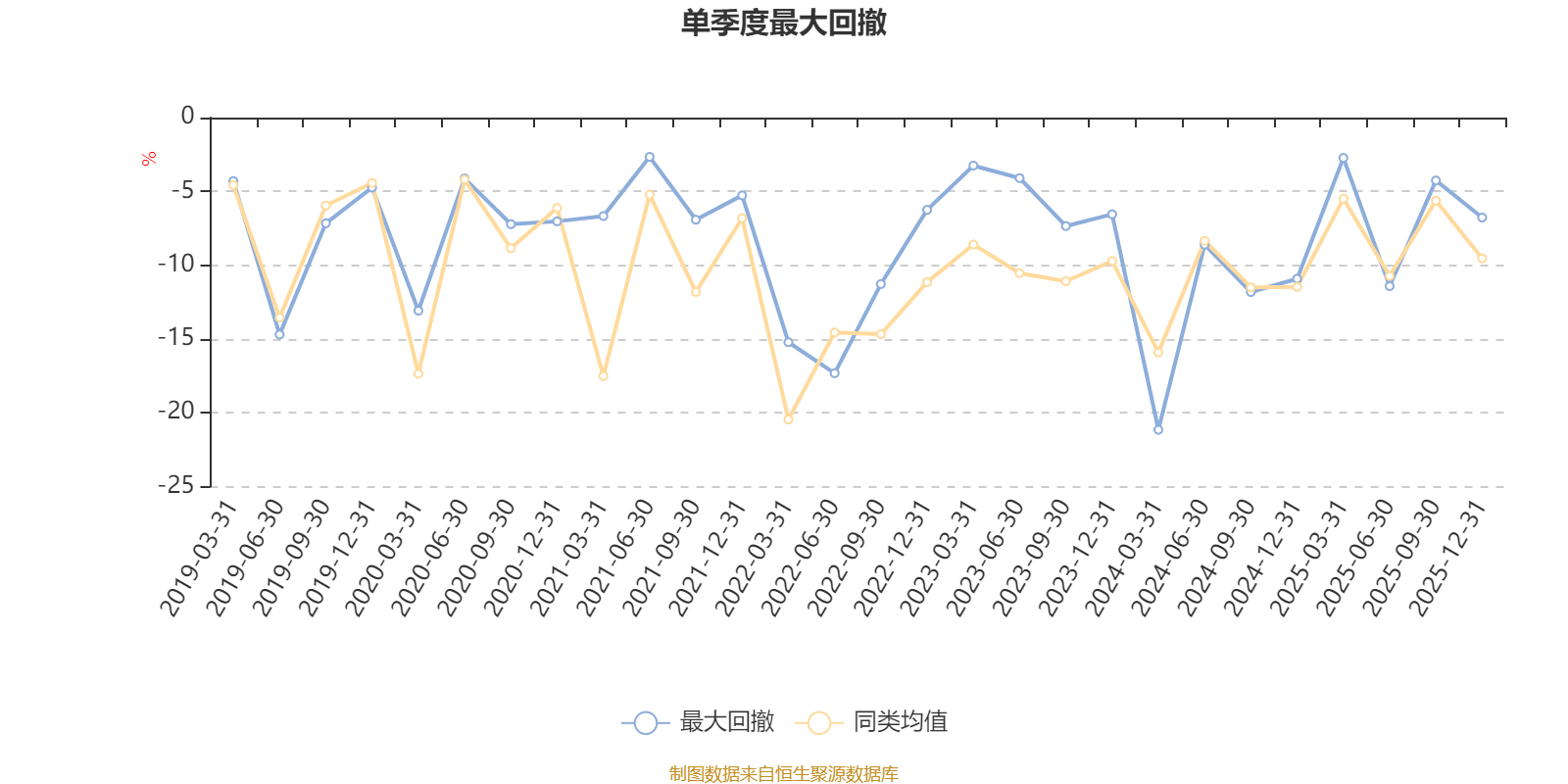 截至1月21日,基金近三年最大回撤為25.96%,同類(lèi)可比基金排名27/156。單季度最大回撤出現(xiàn)在2024年一季度,為21.15%。
