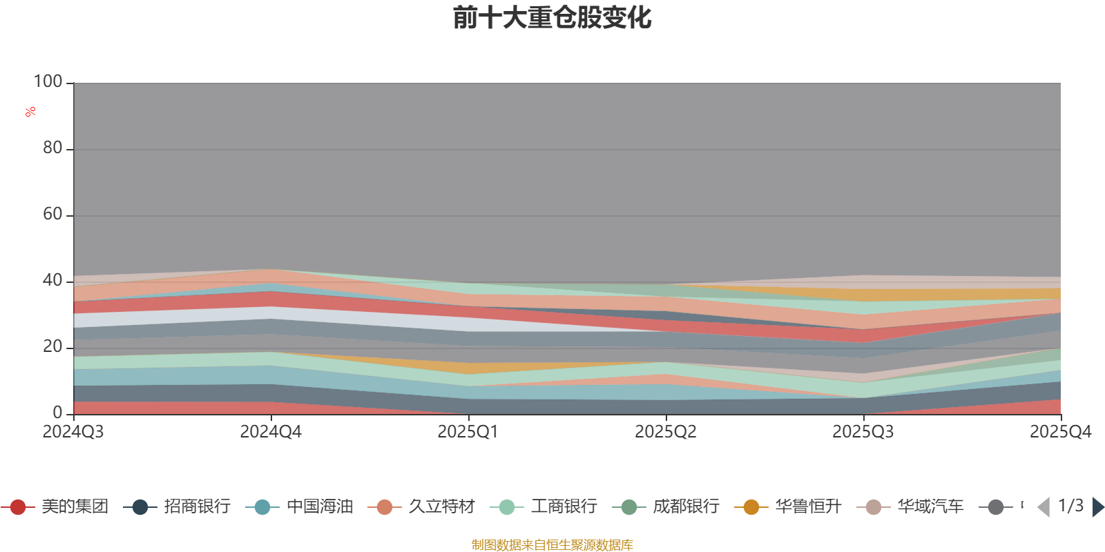 且持股標的較為穩(wěn)定。截至2025年四季度末,基金十大重倉股分別是招商銀行、中國建筑、農(nóng)業(yè)銀行、美的集團、貴州茅臺、成都銀行、中國海油、海信視像、南鋼股份、工商銀行。