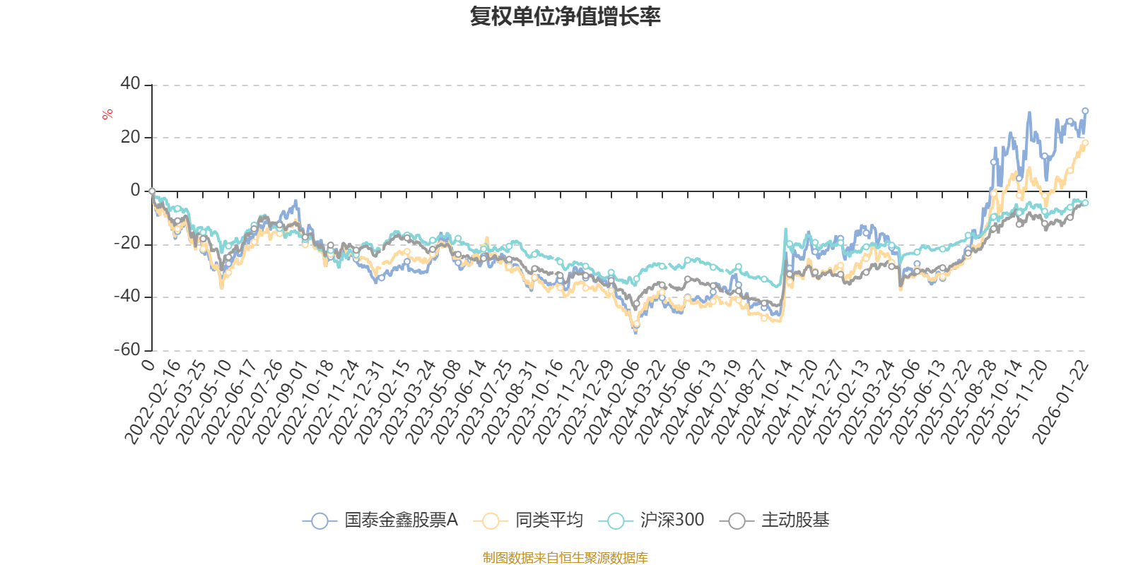 截至1月22日,國泰金鑫股票A近三個月復權單位凈值增長率為13.73%,位于同類可比基金37/63;近半年復權單位凈值增長率為66.67%,位于同類可比基金22/63;近一年復權單位凈值增長率為53.15%,位于同類可比基金39/62;近三年復權單位凈值增長率為82.83%,位于同類可比基金17/52。