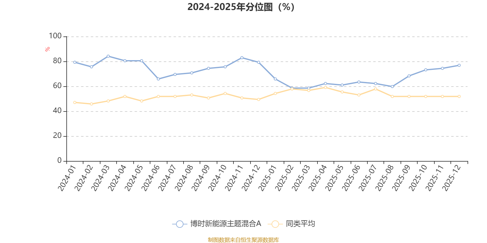 通過所選區(qū)間該基金凈值增長率分位圖,可以觀察該基金與同類基金業(yè)績比較情況。圖為坐標原點到區(qū)間內某時點的凈值增長率在同類基金中的分位數。