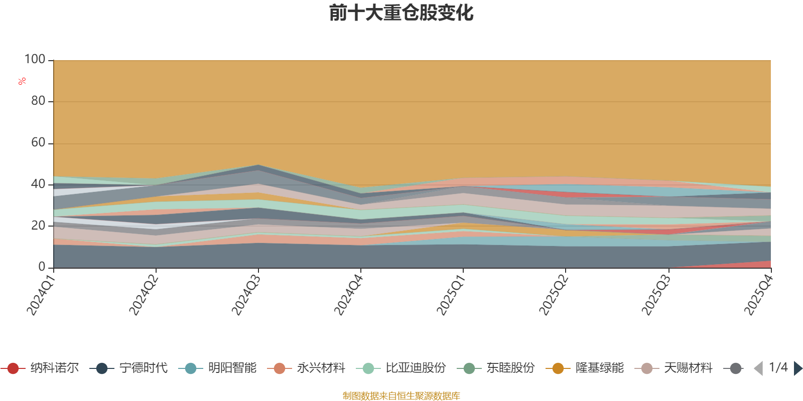 截至2025年四季度末,基金十大重倉股分別是寧德時代、陽光電源、天賜材料、納科諾爾、思源電氣、中礦資源、科達利、東睦股份、多氟多、天齊鋰業(yè)。